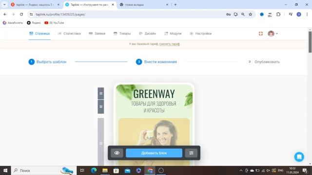 Мой Telegram - https://t.me/elen_bov Мой Инст - https://www.instagram.com/bo_elen/ Записаться на консультацию, наставничество или курс по ВКонтакте - https://t.me/@boelen Задавайте вопросы в комментариях, буду создавать под ваш запрос новые видео. Найти шаблоны дизайнов сайтов: -Ваш аватар вверху справа -Мои профили -Выбираем профиль или создаем новый - Переключаем вкладочку вверху на "мобильный сайт" Ссылочка на Таплинк - https://taplink.ru/invite/1950.1a1f/ Промокоды: Промокод Taplink 10% скидка - 10elen Промокод таплинк на БЕСПЛАТНОЕ использование в течение 7 дней - elen7 В этом видео вы узнаете: 00:12 -Как без дизайнеров самостоятельно сделать красивый сайт на TapLink 00:18 - Варианты готовых шаблонов 00:40 -Где найти уже готовые шаблоны сайтов TapLink 01:40 -Шаблоны по тематикам 01:58 - Как отредактировать шаблон в Таплинк 03:22 - Как сменить тариф 04:10 - Где вводить промокод 04:36 - Как использовать платные функции на тарифе Business БЕСПЛАТНО в течение 7 дней 05:10 -Как и где применить промокод на скидку 10%