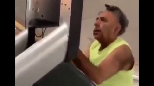 Мужик в парике на беговой дорожке. #прикол #парик #фитнес #спортзал #беговаядорожка