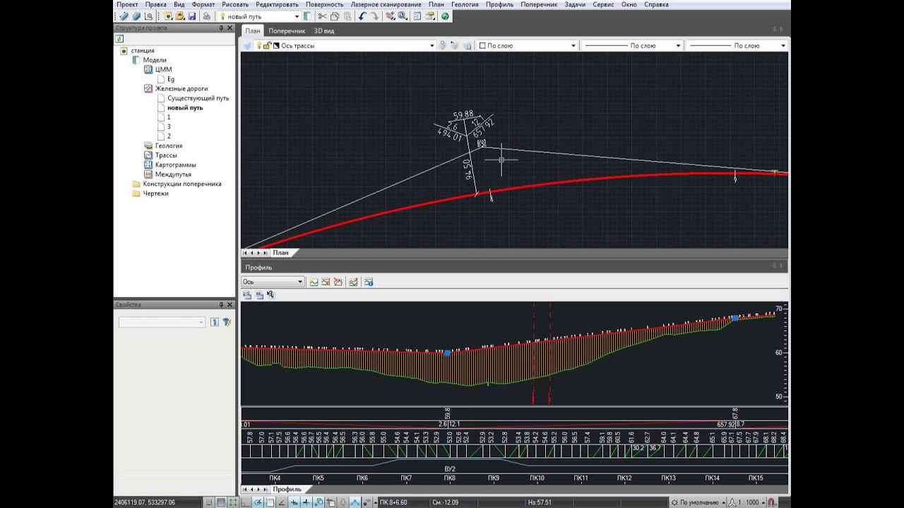 В данном ролике показан пример реконструкции существующей станции с удлинением главных и боковых путей. На участке удлинения была запроектирована стрелочная улица и вертикальная планировка станции. Показаны приемы конструирования земляного полотна включающего однопутные и многопутные участки с примыканием к существующему путевому развитию.