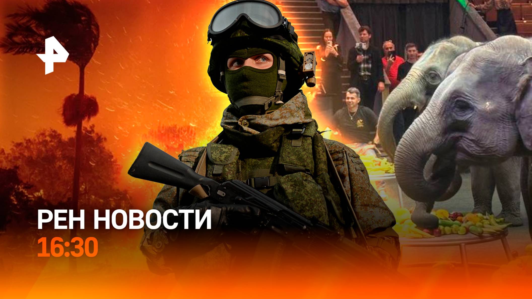 Ракетный удар по Донецку /Калифорния горит, Байден шутит /Слоны в дар! /РЕН Новости 16:30, 10.01.25