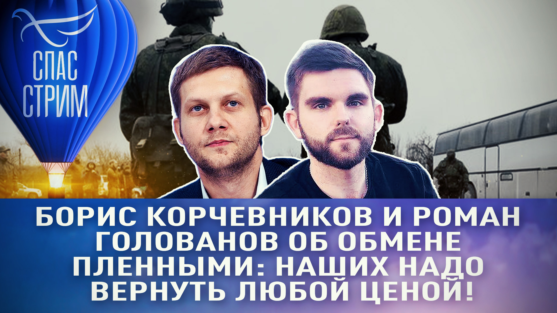 БОРИС КОРЧЕВНИКОВ И РОМАН ГОЛОВАНОВ ОБ ОБМЕНЕ ПЛЕННЫМИ: НАШИХ НАДО ВЕРНУТЬ ЛЮБОЙ ЦЕНОЙ! ⭕Подписывайтесь на RuTube-канал СПАСа. Пишите комментарии и вопросы. Мы их зачитаем в прямом эфире. ____ Подписывайтесь на нас во всех социальных сетях: https://tap.link/spas