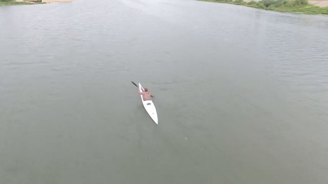 Спортсмен тренируется на байдарке. Вечер. (4K) Russian athlete practicing in a kayak. Evening.