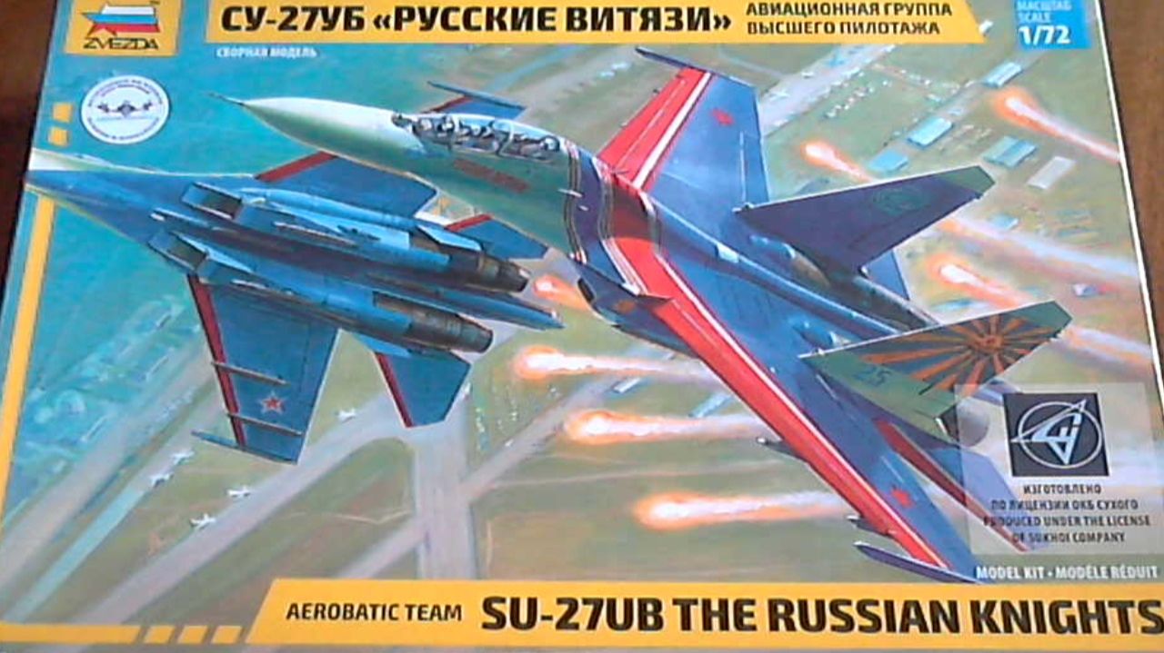 Краткий видеообзор набора для сборки модели Су-27УБ АГВП "Русские витязи" в масштабе 1/72 "ЗВЕЗДА"