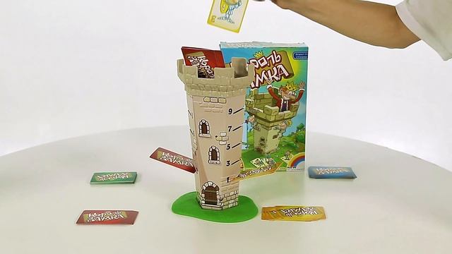 Эта карточная развлекательная игра наверняка увлечет всю семью! Правила игры таковы: каждый игрок выбирает себе карточки определенного цвета, перемешивает их и кладет перед собой. Замок собирается и ставится в таком месте, чтобы все игроки могли легко до него дотянуться. Игра началась! Игроки по очереди берут верхнюю карту со своей колоды и помещают ее в соответствующий номер на башне. Карты должны перемещаться на количество прорезей, указанных на карте, пока не дойдут до верха. Победителем становится игрок, собравший больше всех карт на вершине замка. Кто же первым покорит вершину и станет Королем Замка? В состав игры входят 4 детали для сбора замка и 56 карточек красного, синего, желтого и зеленого цветов. Игра предназначена для 2-4 игроков в возрасте от 3 лет.