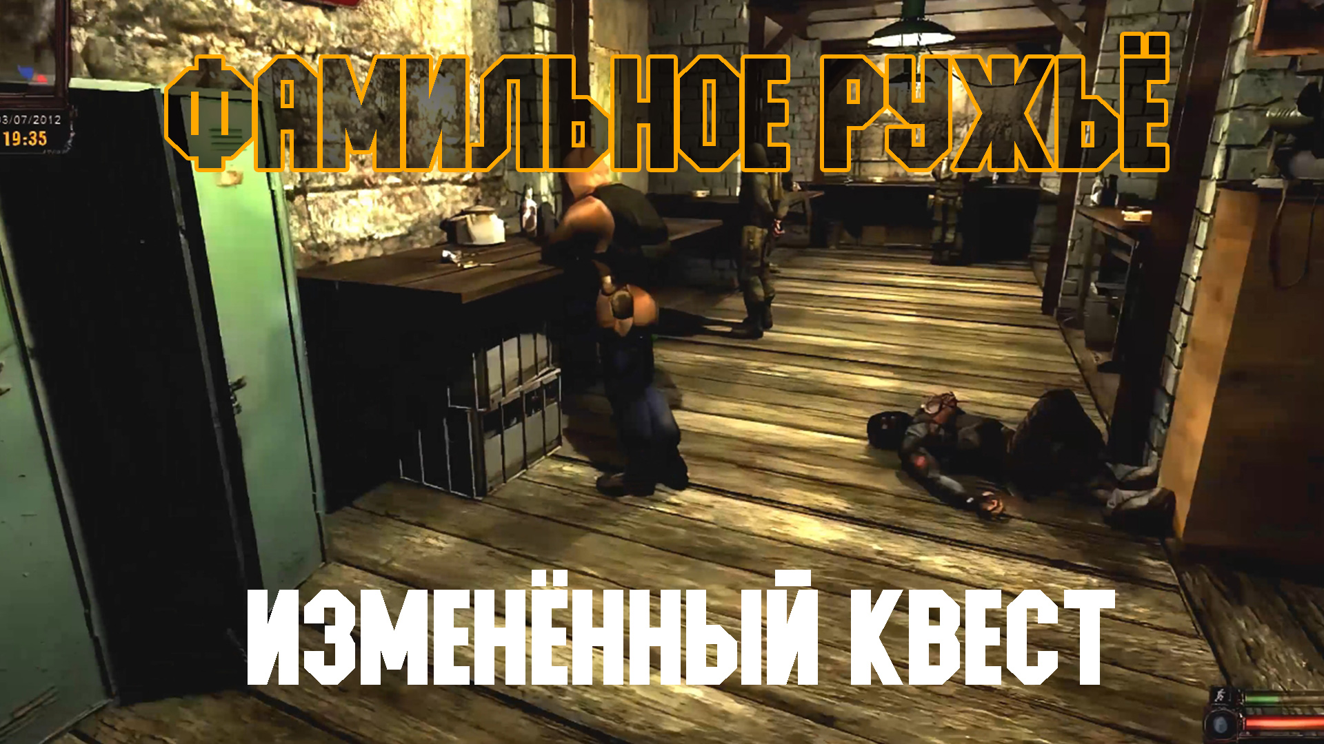 ===== Видео улучшено и перезалито на новый канал в рамках переезда контента ===== Квест выдаёт Охотник в баре "100 Рентген". В релизной версии Охотник потерял своё фамильное оружие в подземке, нам надо просто перейти на Дикую территорию, забрать ружьё и обратно к Охотнику. В ранней версии мы должны были забирать именно двустволку, модель которой до релизной версии не дожила. Насчёт "забрать ружьё" у какой-то банды неизвестно, было ли это в ранней версии или импровизация от мододелов. Кстати, обратите также внимание на то, что ранее локации Бар и Дикая территория были одной целой. Геймплей записывался с модификации Lost Alpha.