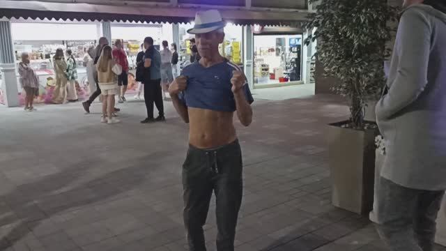 Веселый дедушка танцует на набережной курортного Адлера