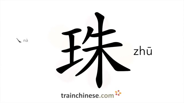 珠 (zhū) bead; vermilion, red-lacquered; to place back and forth