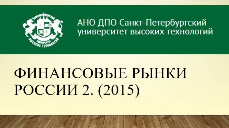 Финансовые рынки России 2. (2015)