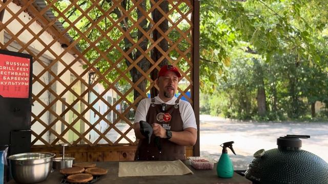 Грибной гамбургер на угольном гриле Green Kamado