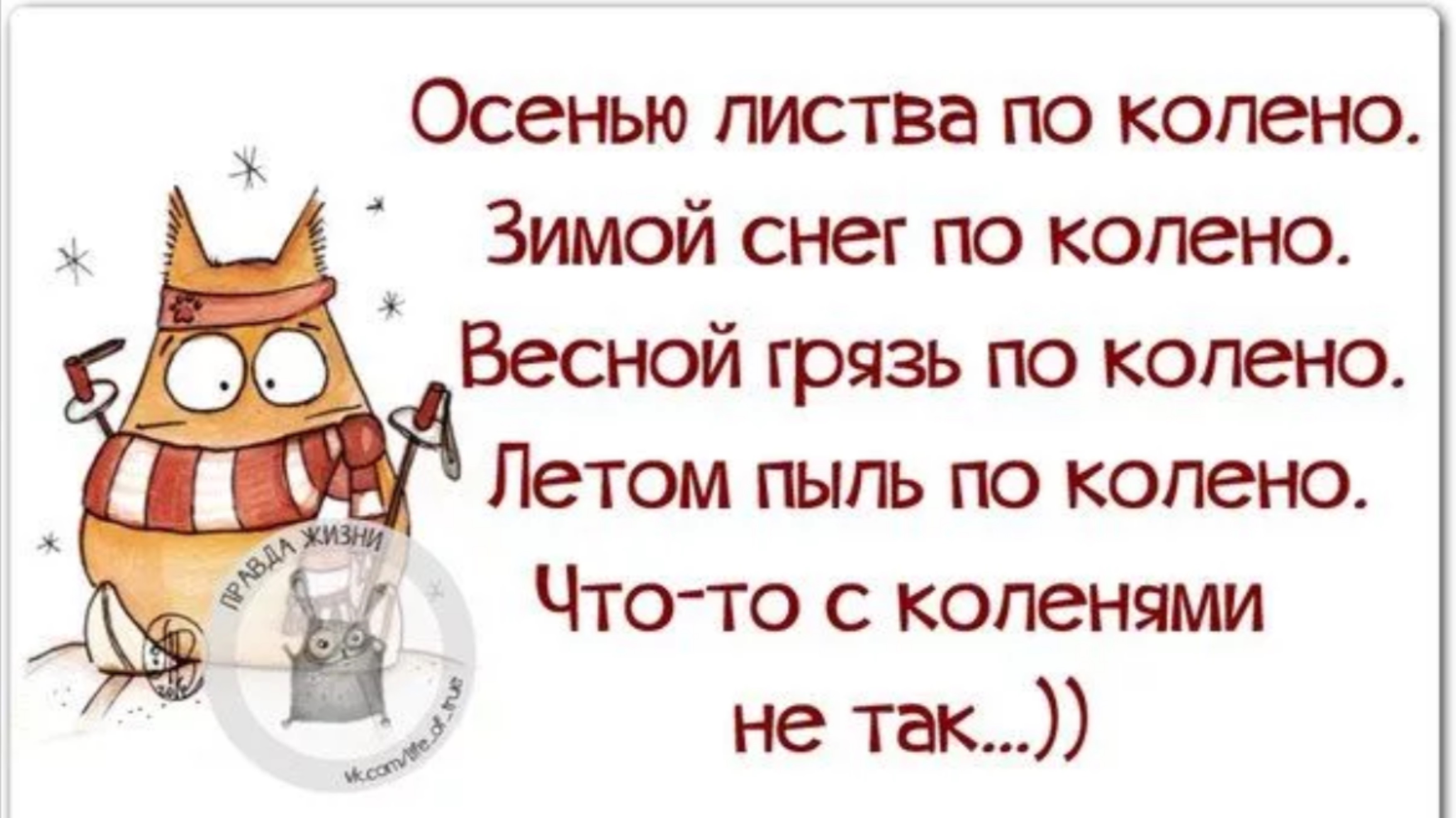 Осенью листва по колено. Зимой снег по колено. Весной грязь по колено.Летом пыль по колен