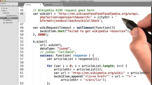 This video is part of an online course, Intro to Ajax. Check out the course here: https://www.udacity.com/course/ud110. This course was designed as part of a program to help you and others become a Front-End Developer. You can check out the full details of the program here: https://www.udacity.com/course/nd001.