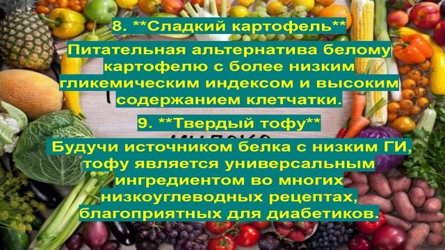 Диета с низким гликемическим индексом: инструмент для контроля уровня сахара в крови Контроль уровня сахара в крови имеет решающее значение, особенно для людей с диабетом или тех, кто хочет поддерживать здоровый вес. Практической стратегией питания для контроля уровня сахара в крови является принятие диеты с низким гликемическим индексом (ГИ). Продукты с низким значением ГИ перевариваются и усваиваются медленнее, вызывая постепенное повышение уровня сахара в крови и уровня инсулина. Этот диетический подход не только помогает контролировать диабет; это также помогает предотвратить скачки уровня сахара в крови, которые могут привести к тяге к еде, вялости и другим осложнениям со здоровьем. Гликемический индекс ГИ ранжирует продукты по шкале от 0 до 100 в зависимости от того, насколько они повышают уровень сахара в крови после еды. Продукты с высоким ГИ быстро перевариваются и усваиваются, вызывая резкое повышение уровня сахара в крови. Напротив, продукты с низким ГИ имеют более медленную скорость переваривания и всасывания, что приводит к постепенному повышению уровня сахара в крови и уровня инсулина. 10 лучших продуктов с низким ГИ для диабетиков 1. Цельнозерновые.Выбирайте киноа, ячмень и овсяные хлопья, которые не только имеют низкий ГИ, но и богаты клетчаткой, что помогает контролировать уровень сахара в крови. 2. Листовая зелень.Шпинат, капуста и другие листовые овощи оказывают минимальное влияние на уровень сахара в крови. 3. Бобовые.Фасоль, чечевица и нут не только имеют низкий ГИ, но также богаты белком и клетчаткой, что делает их отличной пищей для контроля уровня сахара в крови. 4. Некрахмалистые овощи. Брокколи, перец и помидоры имеют низкое содержание углеводов и ГИ, что полезно для контроля диабета. 5. Орехи и семена. Миндаль, грецкие орехи, семена льна и семена чиа имеют низкий ГИ и содержат полезные жиры, которые помогают стабилизировать уровень сахара в крови. 6. Цельные фрукты.Яблоки, ягоды и апельсины имеют более низкий ГИ по сравнению с фруктовыми соками и могут быть более сытными из-за содержания клетчатки. 7. Молочные продукты.Традиционные молочные продукты, такие как молоко и йогурт, имеют низкий ГИ и могут быть частью диеты, благоприятной для диабетиков. 8. Сладкий картофель.Питательная альтернатива белому картофелю с более низким гликемическим индексом и высоким содержанием клетчатки. 9.Твердый тофу. Будучи источником белка с низким ГИ, тофу является универсальным ингредиентом во многих низкоуглеводных рецептах, благоприятных для диабетиков. 10. Цельнозерновые макароны. По сравнению с рафинированными макаронами, цельнозерновые макароны имеют более низкий ГИ и более высокое содержание клетчатки, что делает их лучшим выбором для контроля уровня сахара в крови. Продукты,