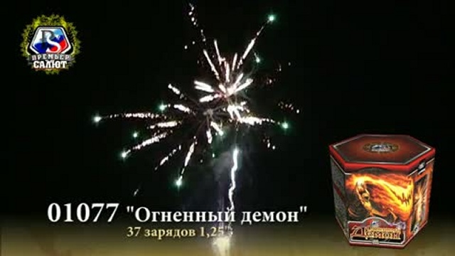 Артикул: 01077 Кол-во зарядов: 37 шт. Калибр: 1.2 " Время работы: 25 с. Высота подъёма: 30 м. Эффект: Пушистые золотые кометы раскрываются золотыми коронами с фиолетовыми, зелеными, желтыми и синими звездами на острие. В финале одновременный залп нескольких зарядов.