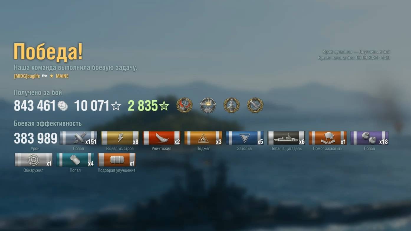 Супер линкор Maine : +383к урона на карте Край вулканов - World of Warships