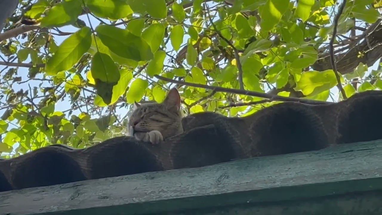 Кошечка уснула на крыше