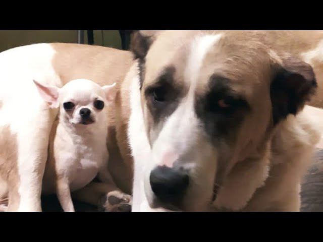 Алабай и Чихуахуа Разница в 70 кг дружбе не помеха ! Аза шлёт привет