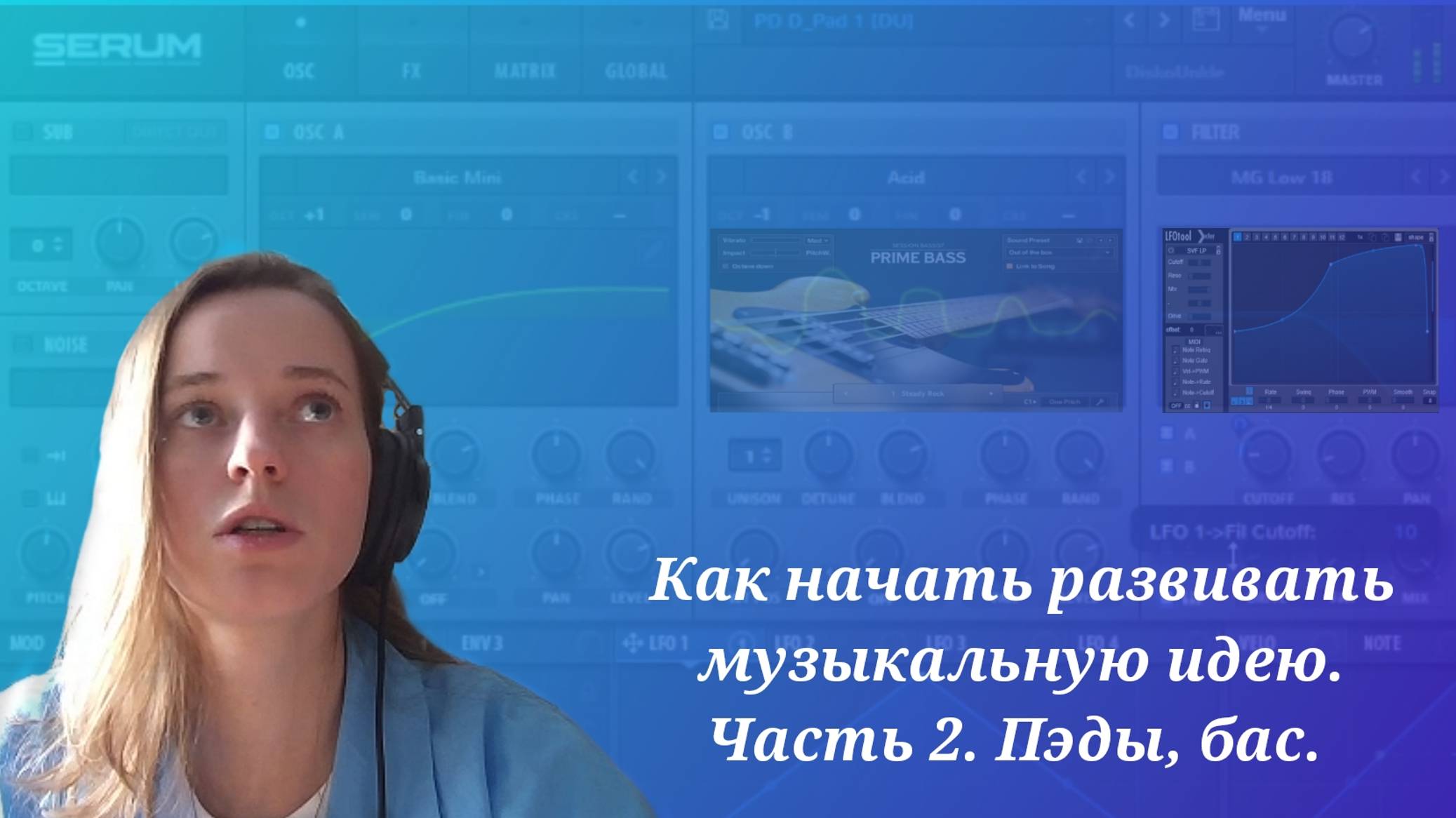 Это 2 часть видео про то, как начать развивать музыкальную идею в полноценный трек. Сделать так, чтобы получившийся проект хотелось открывать, и продолжать работать с ним. В предыдущей части я редактировала заготовку и добавляла барабаны. В этой части речь пойдет про пэд и бас. Добавим атмосферной гармонии, и ритмичного низа. Эта серия из двух частей направлена на то, чтобы без потери времени оформить ту идею, что пришла. Когда ловишь творческий поток, важно успеть зафиксировать идеи, не зацикливаясь на подробном подборе звука. Его можно докрутить позже. 0:00 - В предыдущей части 0:17 - Пишем партию для пэда 0:49 - Пэд в Serum 01:12 - Как можно пэду добавить движения 01:32 - Lfo tool 01:47 - Откуда взять ноты для баса 02:18 - бас в Serum 02:48 - а что если найти готовую партию? 03:09 - добавляем sidechain, чтобы лучше усадить в микс 03:29 - заключение