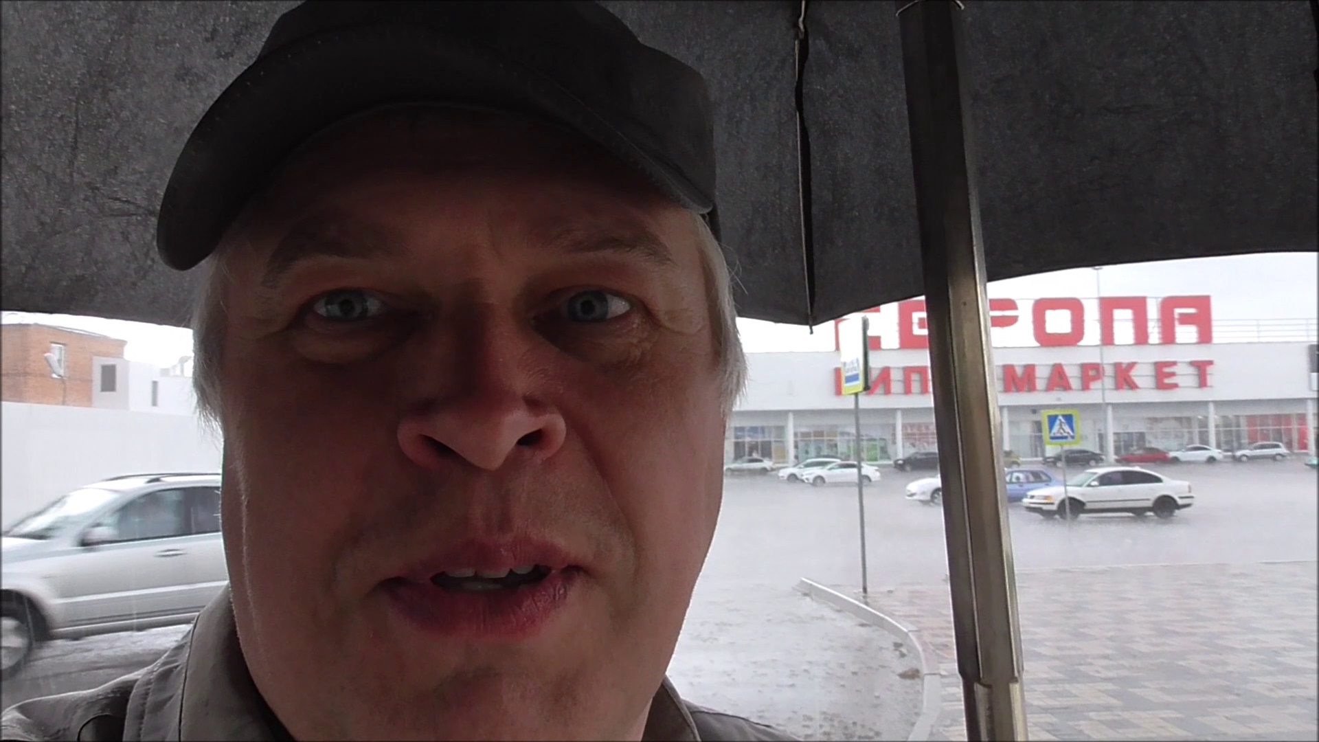Дождь идёт в городе. Лужа после дождя