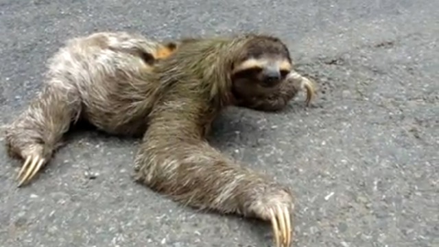 Ленивец перебегает дорогу