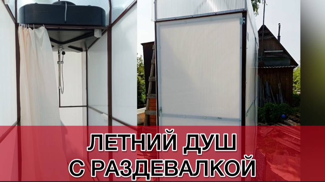 ЛЕТНИЙ ДУШ С РАЗДЕВАЛКОЙ. Летний душ с раздевалкой Вас приветствует компания Уральская Усадьба Огромное количество вариаций размеров и комплектаций! Ширина стандартная 1 метр Длина 1 или 2 метра (с раздевалкой или без) Высота 2 метра без крыши, 2,6 с крышей; 2,4 метра без крыши и 3 метра с крышей. Если у вас закрытая площадка или выход из бани, то можно поставить без раздевалки, хотя это очень спорный вопрос 😉 Высота 2,6 метра подходит у рост до 1,70 метра, у кого выше лучше взять высоту 3 метра. Преимущество высокого летнего душа, в том что можно установить душевой поддон. Баки для воды бывают с подогревом и без. С подогревом баки оснащены тэном мощностью 2квт с терморегулятором. Объём : 150-200-250 литров. Также можно заказать дополнительно: Трапик, фундамент из бруса, монтаж и доставку Покрытие: Стен цветной сотовый поликарбонат: белого цвета Крыша покрывается прозрачным поликарбонатом. Выбираете и согласовываете комплектацию и стоимость! Оплачиваете и комплект летнего душа будет вас радовать! __________________________ Кстати, душ можно устанавливать в любое время года. Посмотрите, какой вариант мы предлагаем – готовый дачный душ вместе с баком, всеми шлангами, лейкой, полом и важными мелочами для вашего комфорта. Заказать или задать любой вопрос вы можете в комментариях, Вацап +79025844115. Выставка-продажа проходит по адресу г. Екатеринбург, ул. Климовская, 23 ☎ +7 (343)-207-14-06 WhatsApp +7(902) 584-41-15