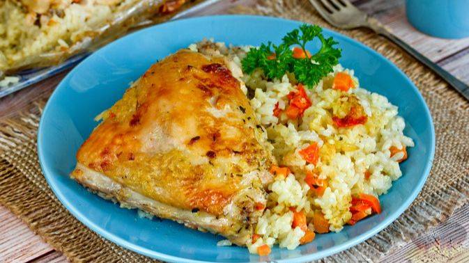 Куриное мясо – сочное, нежное, буквально тает во рту, а рис, пропитываясь соком от куриных бёдрышек и овощей, получается ароматным, с насыщенным вкусом. #КурицаЗапечённаяСРисомИОвощамиВРукаве #КурицаСРисомИОвощами #КурицаНаПраздничныйСтол #КурицаСРисомВРукаве #КурицаСРисомВПакете