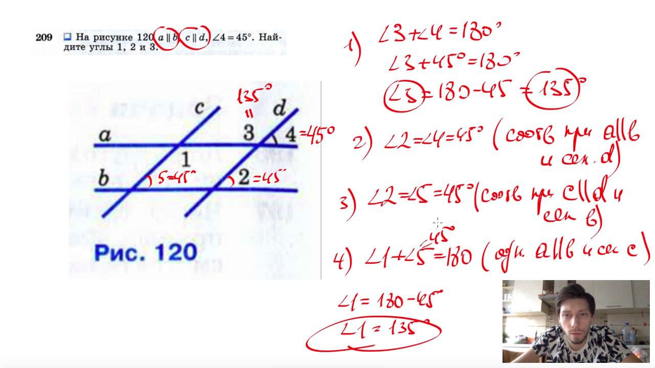 №209. На рисунке 118 a||b, c||d, ∠4=45°. Найдите углы 1, 2 и 3. Поддержать канал рублём - 5469400944002125 (Сбербанк) Мой второй канал для подготовки к ЕГЭ и ОГЭ - https://www.youtube.com/ЕвгенийСумин Инстаграм - https://www.instagram.com/EGE_OGE.math Личный инстаграм - https://www.instagram.com/ee_sumin VK - https://vk.com/evgeniysumin FB - https://www.facebook.com/EvgeniySumin