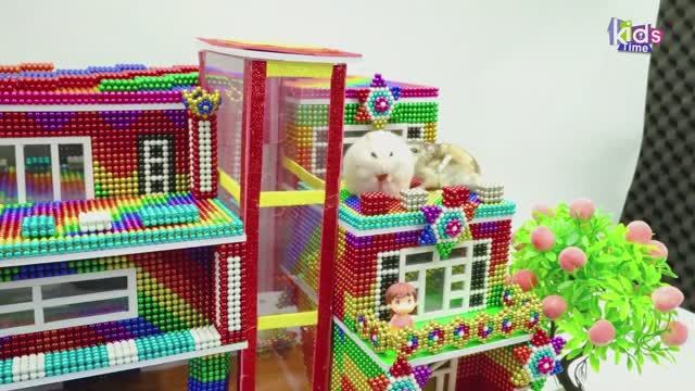 Магнитные шарики - Постройте Супер Веселую Двойную Водную Горку с Летним Бассейном И Лифтом из Красн