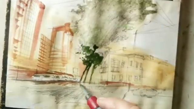 Городская зарисовка Карандаш Акварель УСКОРЕНО 04'55'' GoogleSketching UrbanSketching