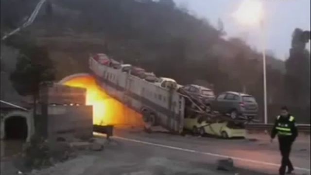 Камера наблюдения, установленная напротив одного из тоннелей Китая, сняла ужасное ДТП.