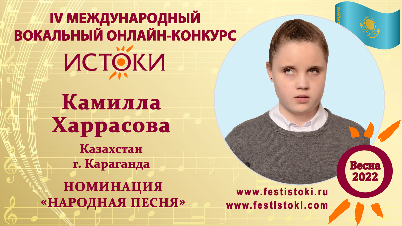 Лауреат III степени IV Международного вокального онлайн-конкурса «Истоки».Весна-2022. Номинация "Народная песня". Русская народная песня "На заре было, на зорюшке". Сайт: www.festistoki.ru / www.festistoki.com E-mail: festistoki@mail.ru