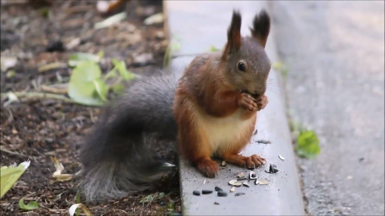 Белочка борется за свои семечки..