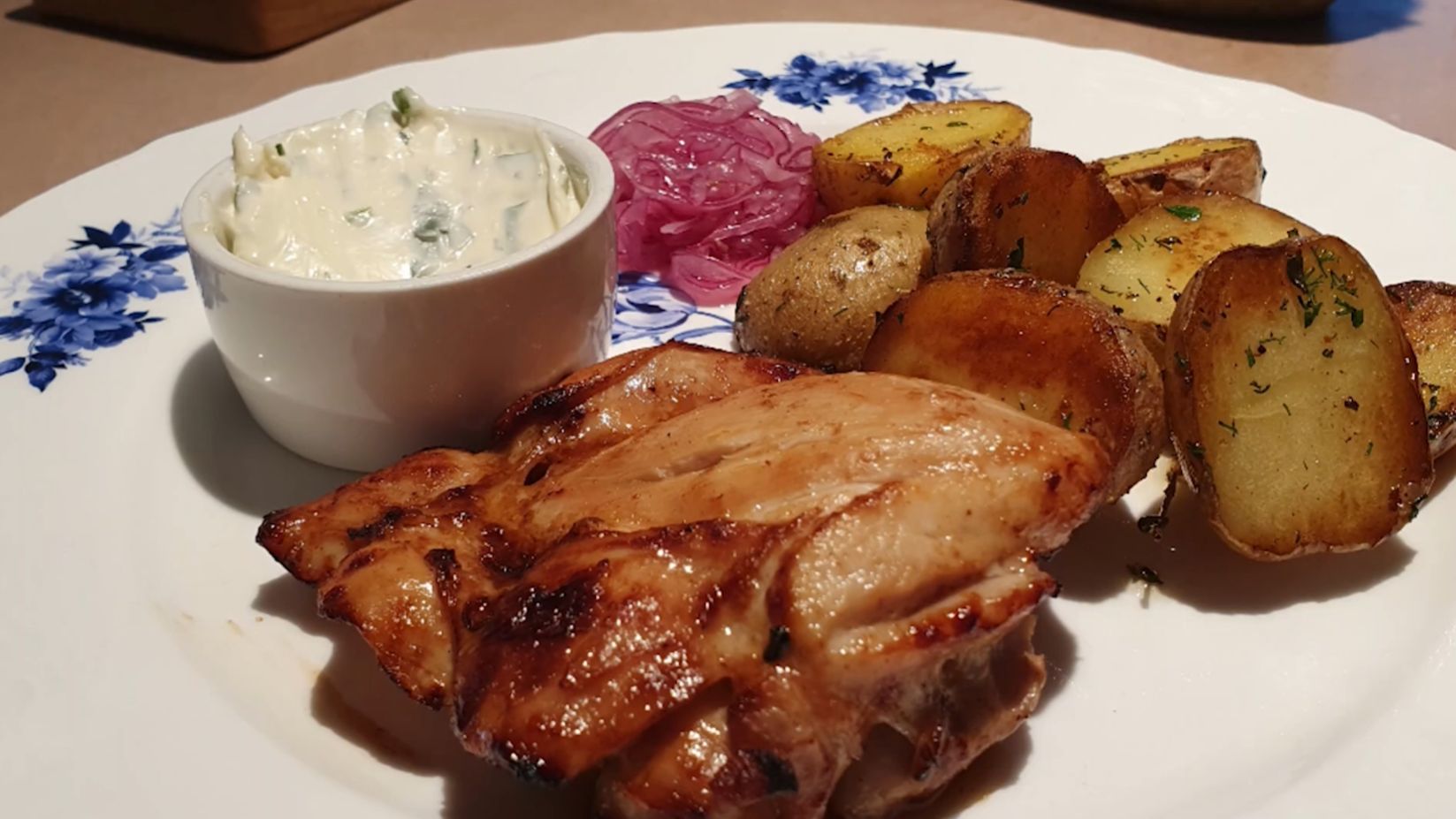Куриная грудка с картофелем в духовке - это классическое блюдо, которое пользуется популярностью во многих кухнях мира. Оно простое в приготовлении, но в то же время очень вкусное и питательное. История этого блюда уходит корнями в давние времена, когда люди начали использовать духовку для приготовления пищи. Куриная грудка с картофелем в духовке стала популярной по нескольким причинам. Во-первых, это блюдо очень удобно готовить, так как все ингредиенты можно просто положить на противень и отправить в духовку. Во-вторых, такое приготовление позволяет сохранить все полезные вещества в продуктах и придает блюду особый вкус и аромат. 🌞 Ингредиенты: Картофель – 500 г. Куриная грудка или бедра – 725 г. или (что душе угодно) Соевый соус - 1 стол.ложка Соль - 1,5 стол.ложки Масло грецкого ореха - 40 г. Мёд - 1 стол.ложка Паприка - 0,5 чайн.ложки Чеснок сушеный - 2 чайн.ложки 🤗 Соус: Сметана 30% жирности - 100 г. Зелень - 30 г. Чеснок сушеный - 1 чайн. ложка 🤗 Приправьте курицу и картофель. Переложите курицу и картофель в форму для запекания. Самое главное в этом блюде - это сделать надрезы на курином филе, потому что так мясо хорошо пропитывается соусом и остаётся сочным и нежным. А ещё один важный момент в этом рецепте - накрываем блюдо сверху... Противень с ингредиентами ставится в разогретую до 180 градусов духовку и готовится до готовности, обычно около 40 - 50 минут, пока курица не станет золотистой и сочной, а картофель не будет мягким и ароматным. 🌞 Приятного аппетита! Готовьте с удовольствием! Спасибо, что заглянули. До скорых встреч! Поделись с друзьями и ставь ЛАЙК🤗 🤗ПОДДЕРЖИТЕ МОЙ КАНАЛ: ✅Донат в поддержку канала: https://yoomoney.ru/to/4100118611379120 ✅Поддержка на карту Сбер: 2202 2036 3844 8375 ✅Поддержка на карту Ozon: 2204 3201 0933 4872 Все средства пойдут на развитие канала. Спасибо!🌞
