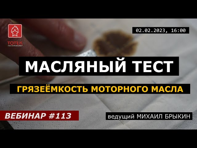 МАСЛЯНЫЙ ТЕСТ. ГРЯЗЕЁМКОСТЬ МОТОРНОГО МАСЛА ВЕБИНАР №113