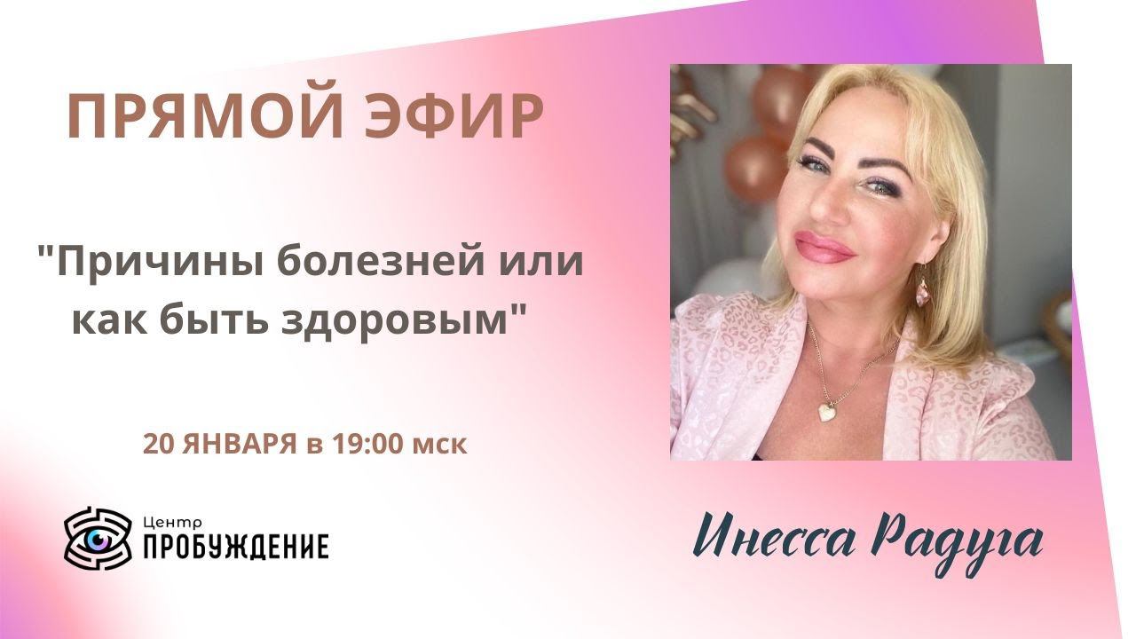 Каждый из нас хочет быть здоровым и свободным от неприятных ощущений. Часто мы обращаемся к медицине, но не всегда получаем желаемый результат. Это происходит потому, что мы не знаем истинных причин наших недугов. Если бы мы знали, как вылечить себя, наша жизнь стала бы намного проще и легче. Именно поэтому мы предлагаем вам присоединиться к прямому эфиру с Инессой Радуга. Она поможет нам разобраться в том, что мы делаем не так, какие сообщения принесла нам болезнь и как ее излечить. Инесса Радуга - это уникальный проводник между нами и высшими силами. Она поможет нам раскрыть тайны нашего здоровья и даст ответы на все вопросы, которые у нас возникают. Не упустите возможность задать свой вопрос и получить ответы от Инессы Радуги. Присоединяйтесь к прямому эфиру и откройте для себя новый путь к здоровью и благополучию. Инесса готова предоставить вам максимально точную и нужную информацию. Она не использует никаких подручных средств, кроме бумаги и ручки. Вся информация приходит к ней с потока. Для этого ей достаточно знать ваши ФИО. Имя - звуковой код, вибрация - как паспорт человека в мире тонком и непрерывно с нами связанном. Через этот звуковой код Инесса получает из потока информацию о человеке (характере, поведении, предпочтениях, отношениях). Пожалуйста, имейте в виду, что конфиденциальная информация, получаемая из потока, не будет озвучиваться в прямом эфире. Более детальное и развернутое обсуждение возможно только при личной встрече. Готовьте свои вопросы и мы разберем их в прямом эфире! Вопросы можно задавать в прямом эфире или заранее направлять на эл почту: info@probujdenie.ru _____________________ Подробнее о специалисте и консультациях на персональной странице Инессы https://probujdenie.ru/experts/inessa-raduga Получайте еще больше полезной информации о регрессиях и других темах в телеграмм-канале Центра "Пробуждение": ✨ https://t.me/+HJKxhSQy3640MDJi Подписывайтесь в группу ВК: https://vk.cc/clbZlF Получайте полезные материалы от лучших практиков школы "Пробуждение" https://vk.cc/clc8UR