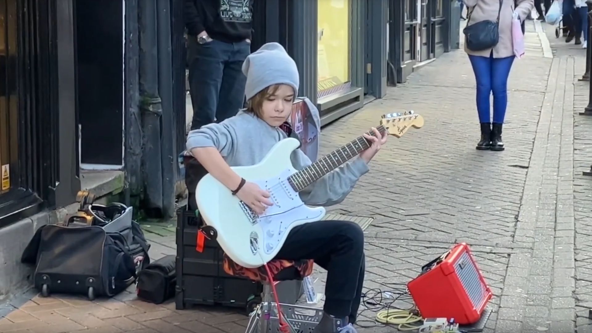 Олли. Толпа сходит с ума. 9-летний уличный гитарист. Честер. #дети#гитара#выступление#улица# 9 лет
