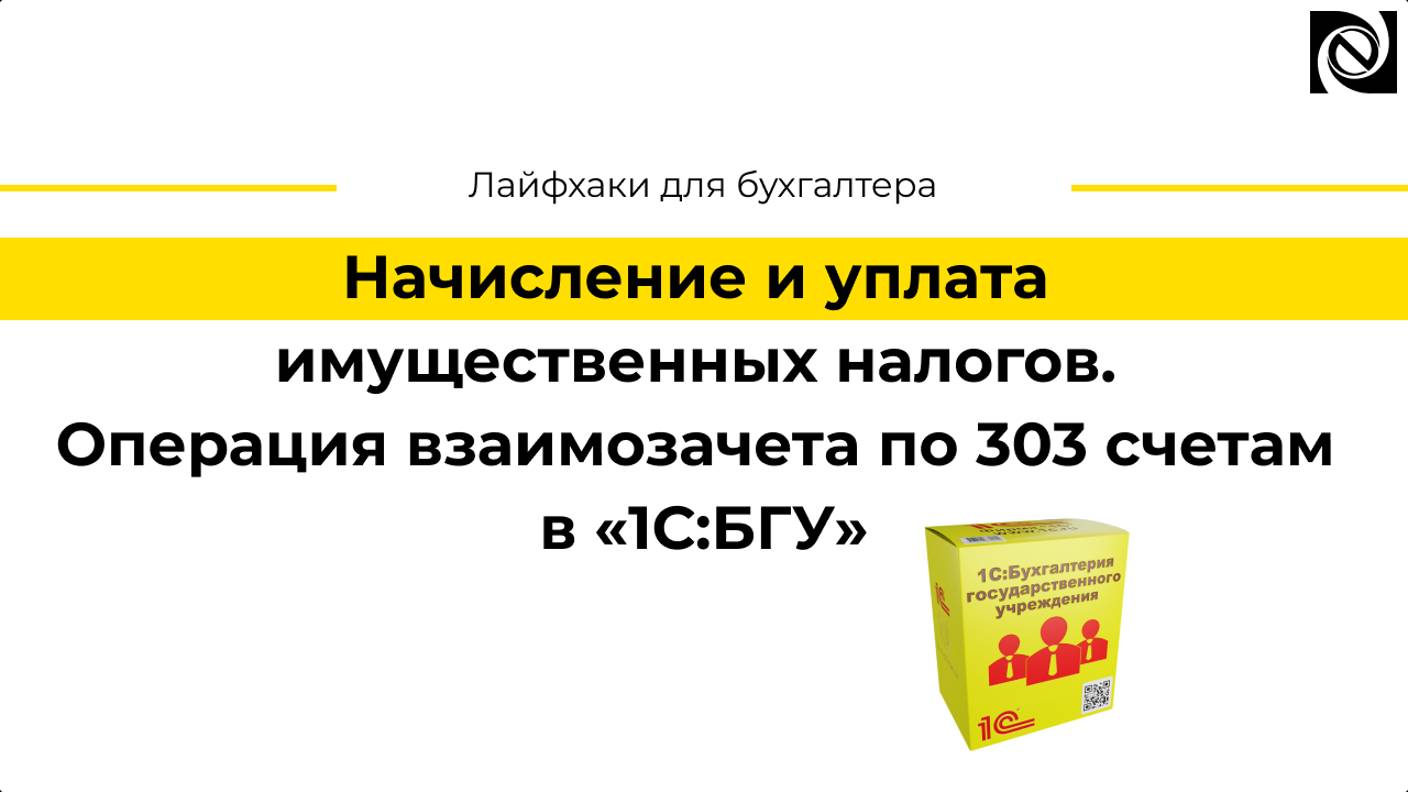 Начисление и уплата имущественных налогов. Операция взаимозачета по 303 счетам в «1С:БГУ»