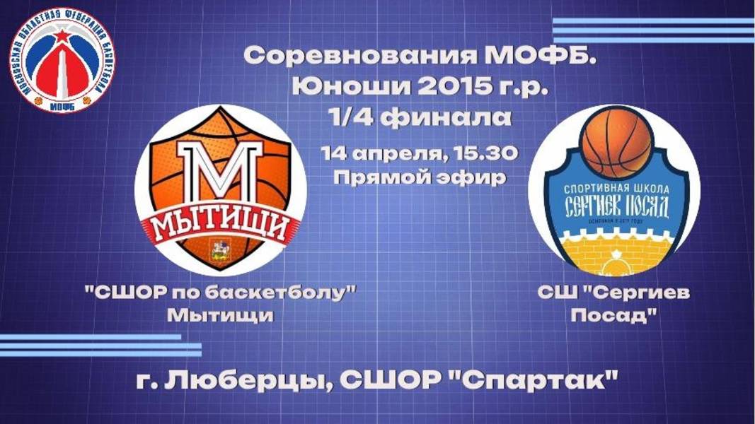 ПМО. Юноши 2015 г.р. 1/4 Финала. 14 Апреля 15:30 "СШОР по баскетболу Мытищи"-СШ "Сергиев-Посад"