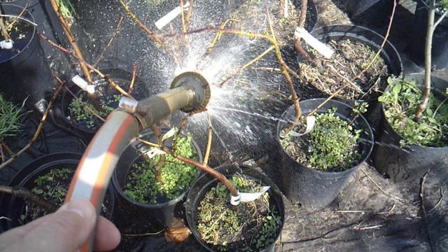 Работаю в саду: поливаю саженцы