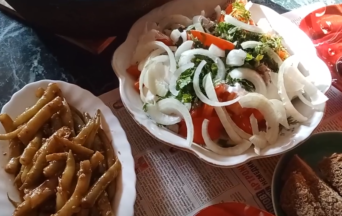 Салаты. Рецепты. Огурцы. Помидоры. Лук. Фасоль. Жаркое. Свиные ребрышки. Картофель. Ребрышки. Рецепт