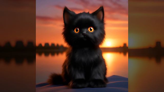 ЧЕРНЫЙ КОТЕНОК МАЛЕНЬКИЙ В ВЕЧЕРНЕМ ЗАКАТЕ