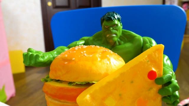 Голодный Халк в Кафе Бонжур! — Готовим вместе с набором Плей До — Халк съел все и требует еще!