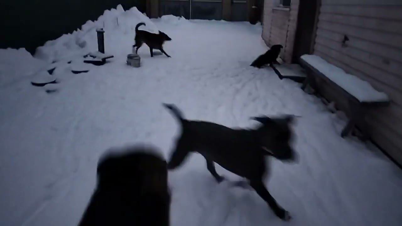 Вечерняя пробежка собак по снегу