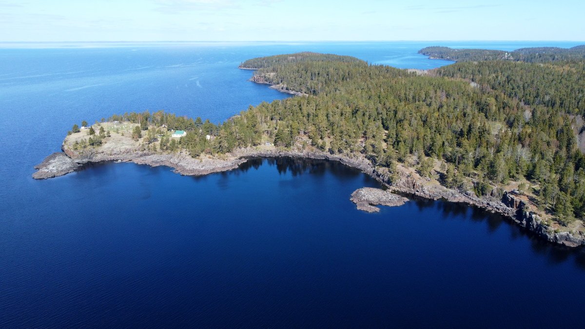 Вид с высоты на скалистый берег острова Валаам. Валаам - остров в северной части Ладожского озера, самый большой в составе Валаамского архипелага.