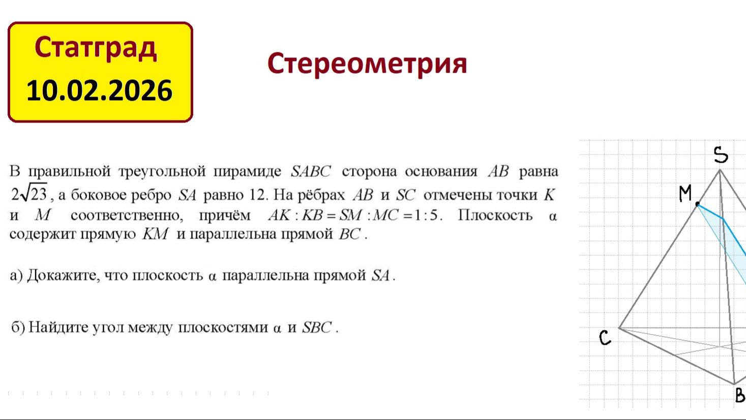 Статград 10.02.2026 Стереометрия