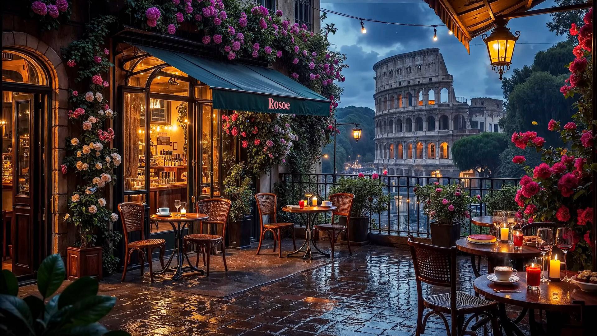 Вечерний Джаз в Риме | Музыка Дождя и Уют Кафе у Колизея