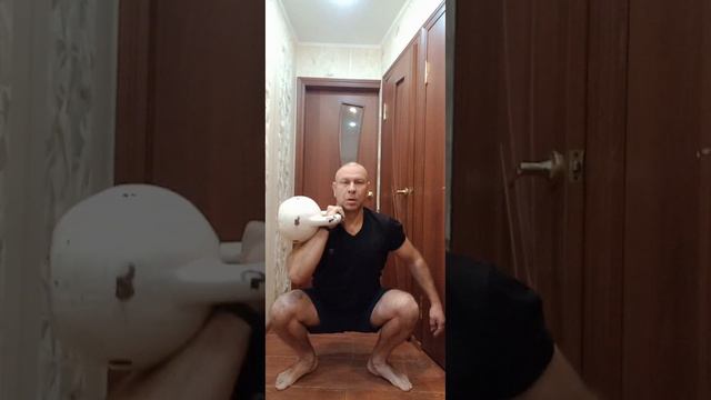 29.11.23 утро, перед работой. после разминки комплекс. трастеры 10 - на каждую сторону с гирей 16 кг 10 - выбросы с гирей 24 кг