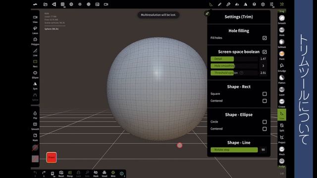 ipadで3Dモデリング Nomad Sculpt使い方13 トリムツールについて
