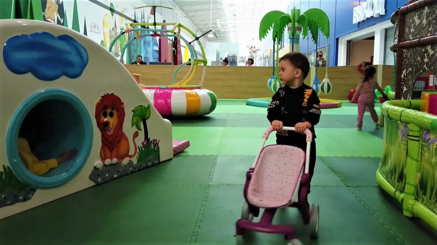 Трофимка в парке развлечений для самых маленьких деток! Знакомится, играет и катается с горки !