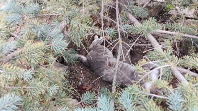 Кот валяется в укрытии