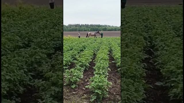 Окучивание картошки лошадью 2025